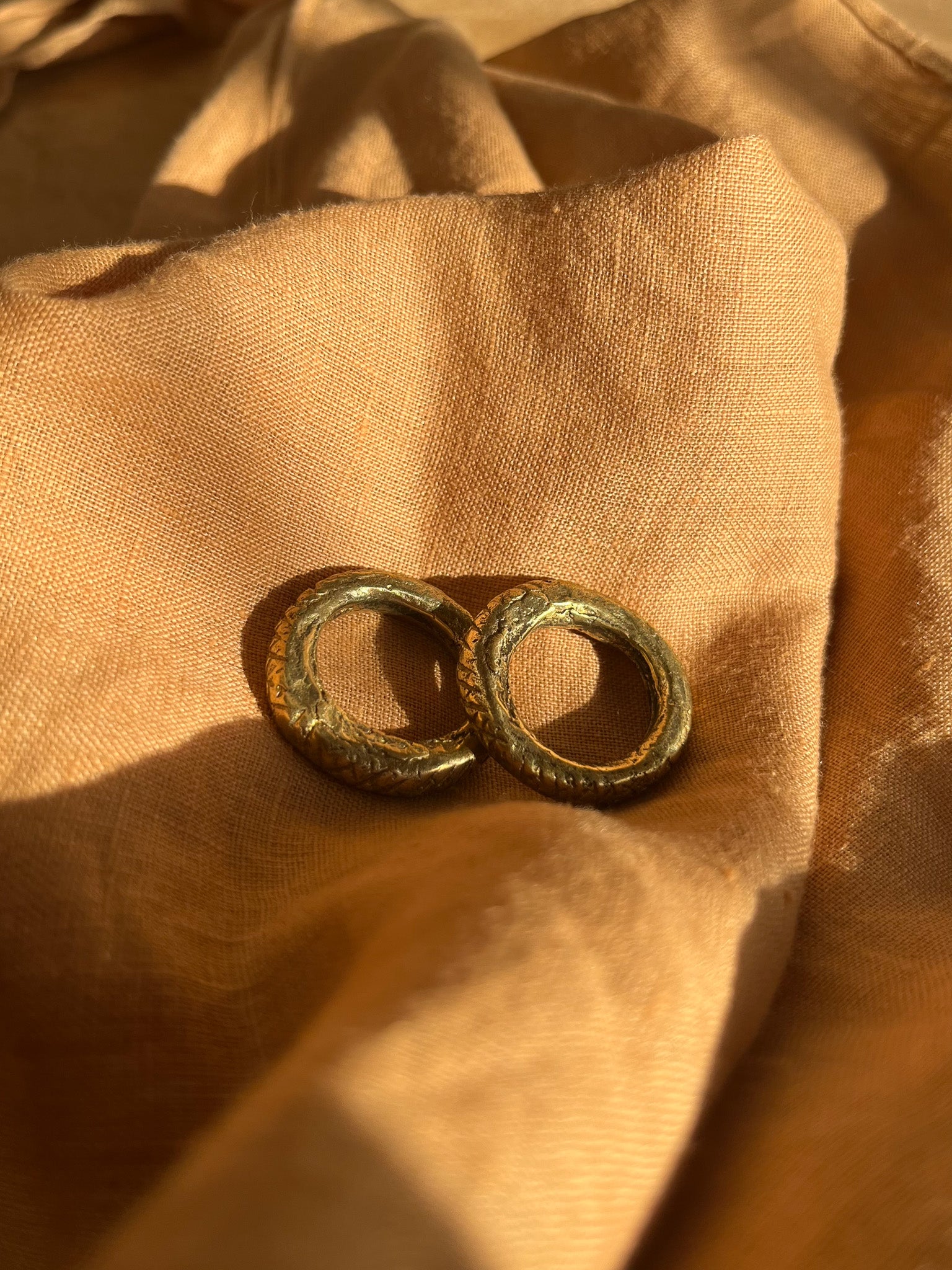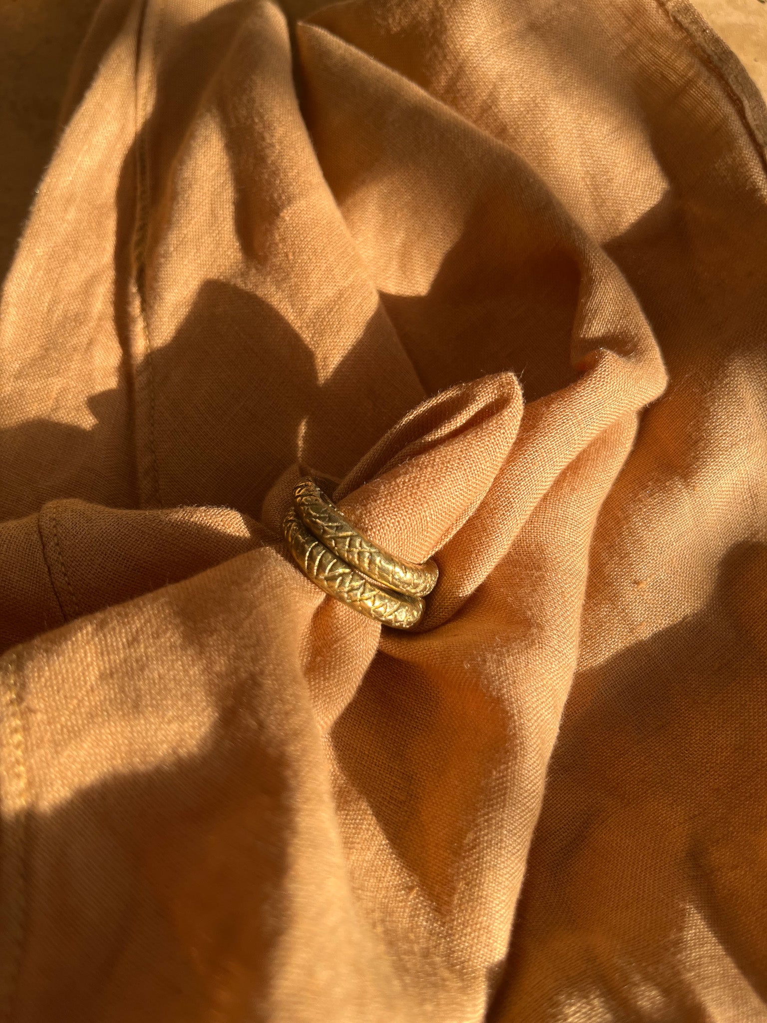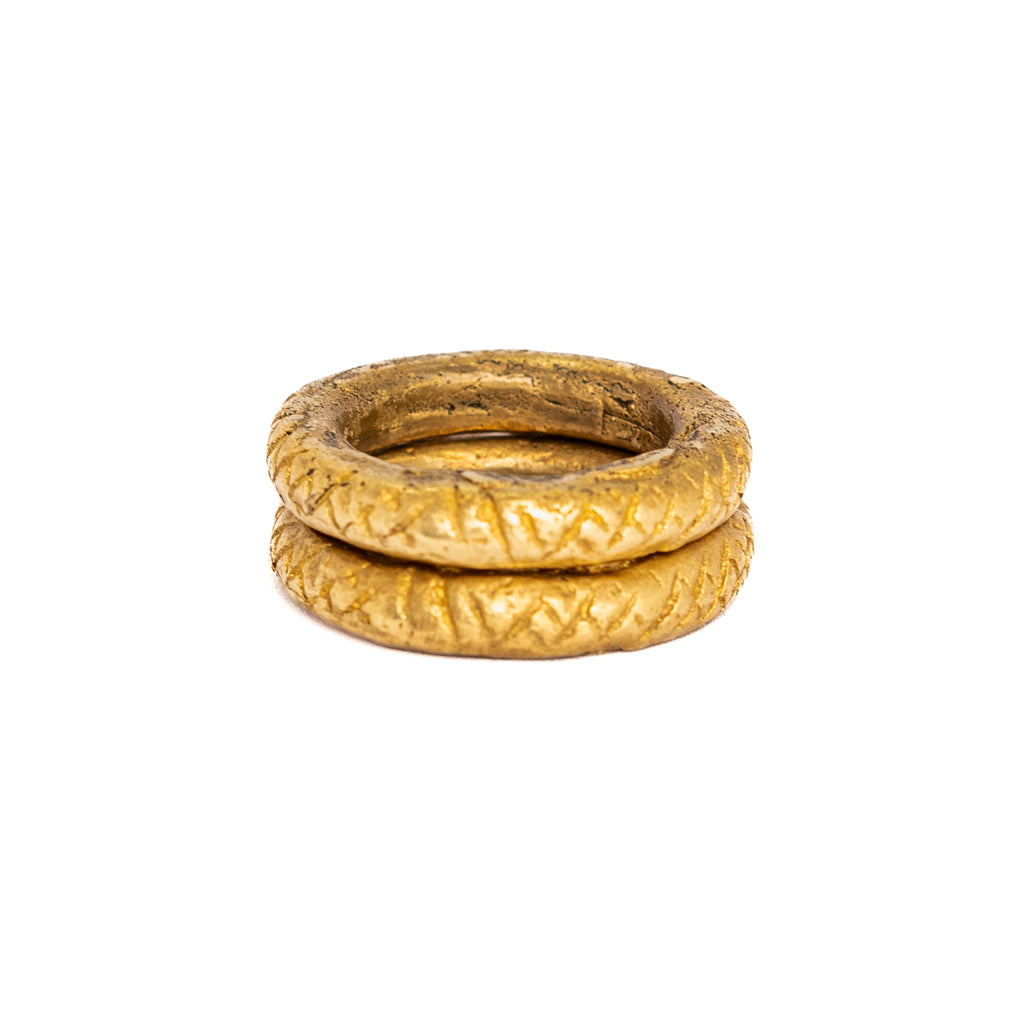 Known as Solveras brass from Cote d’Ivoire, this antique ring was sourced from a West African market in Nairobi’s CBD. Cast in brass using the lost-wax method. Worn as a single or double ring for emphasis.